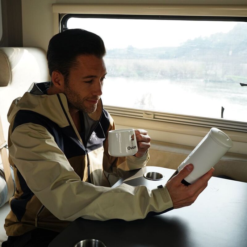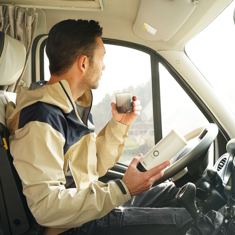 Weighing like a loaf of bread less than 700g, you can take Outin Espresso Machine anywhere for espresso with its travel-sized shape. With just one tap, you can start brewing your golden ratio coffee with a bottle-sized Outin at home or outdoors. Now, overpriced coffee and long waiting time at cafes is over.