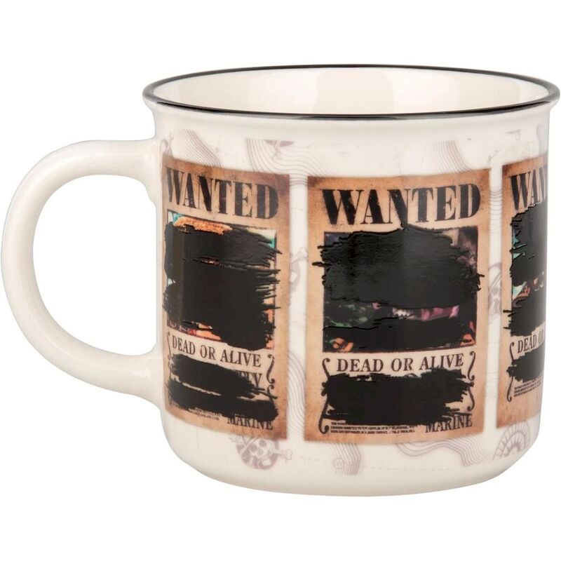 Drink your morning coffee in pirate style with this One Piece Heat Change Mug. Add a hot drink to reveal the pirates behind the wanted posters.