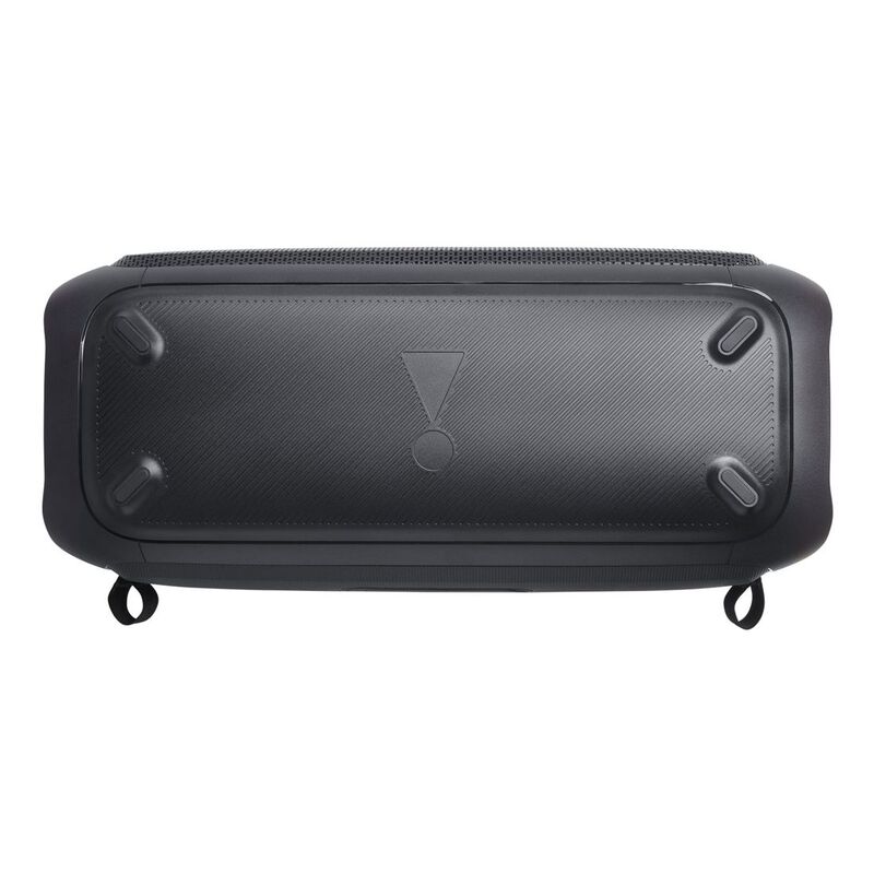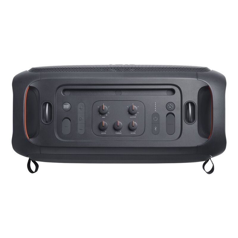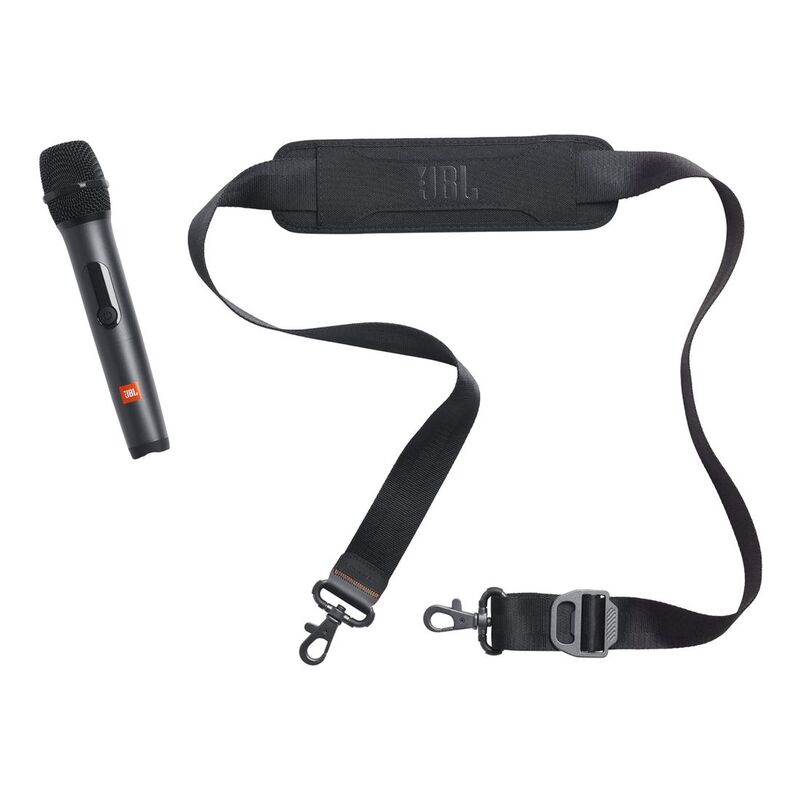 From beach parties to festivals, the JBL PartyBox On-The-Go Essential lets you see, hear and feel the beat. Turn it up loud with 100 watts of powerful JBL Pro Sound, synched to a dazzling light show. Access your favorite tunes with Bluetooth, USB, AUX and TWS (True Wireless Stereo) connectivity, grab a friend and sing your hearts out with the JBL wireless mics, or use the guitar input to play along. With a bottle opener, padded shoulder strap, rechargeable battery and IPX4 splashproof protection, the JBL PartyBox On-The-Go Essential has everything you need to get the party started—and take it with you.