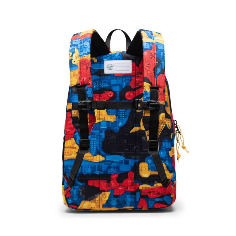 Herschel x LEGO® Collection. Pack for playtime with the limited-edition Herschel Heritage™ Youth Backpack, reimagined with custom LEGO prints and labels. Made with a roomy interior, it transitions effortlessly from school to play with multiple pockets and comfortable padded shoulder straps for kids aged 8 – 12 years.
