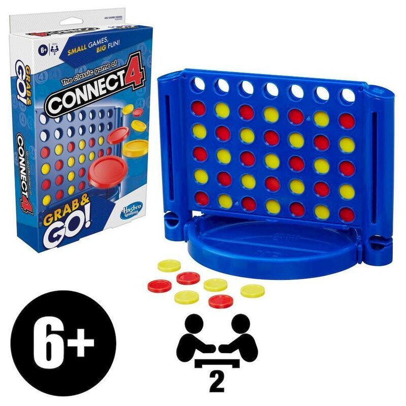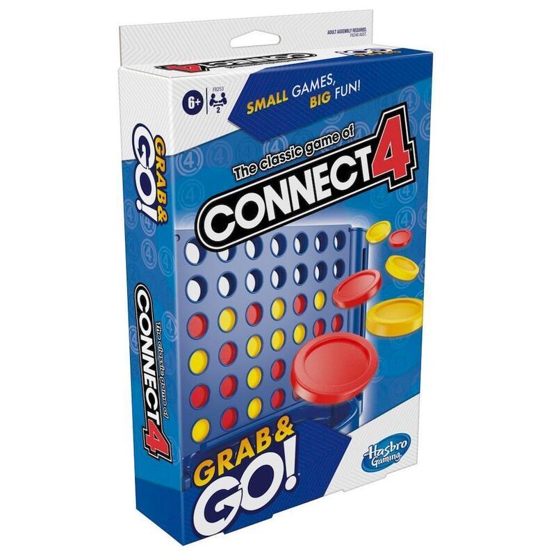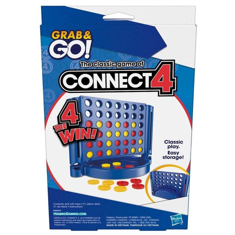 - The Connect 4 Grab and Go game is a mini, portable version of the Connect 4 game for fun on the run.