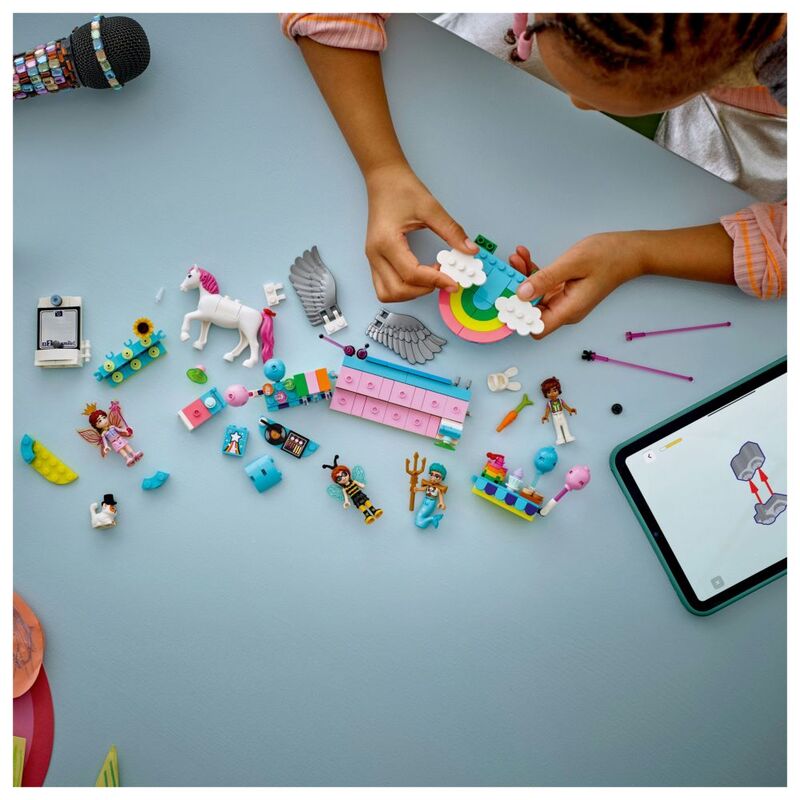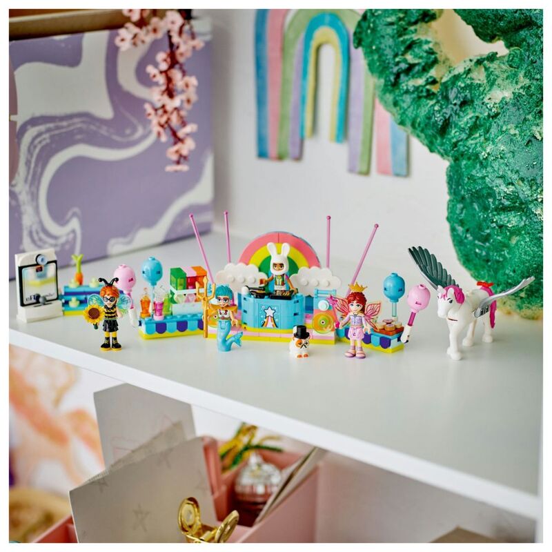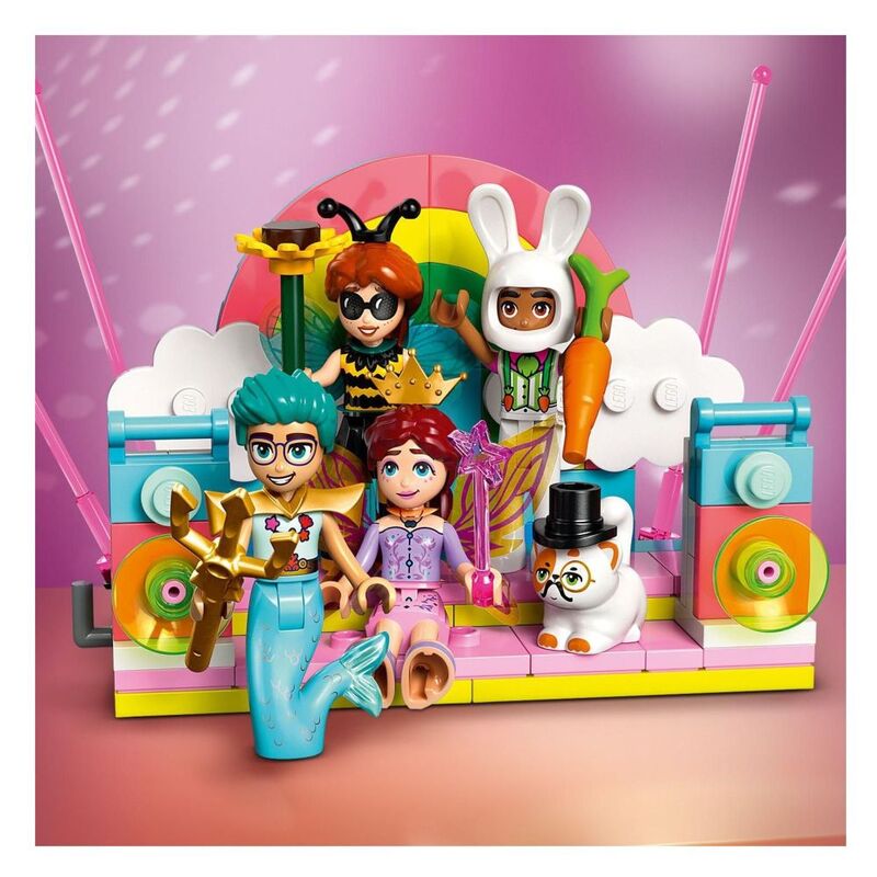 - • 4 minidolls and 2 LEGO® animal figures – Get the party started with Autumn, Olly, Leo, Paisley and their pets as they dress up as a bumblebee, merman, magician, bunny, fairy and a unicorn
