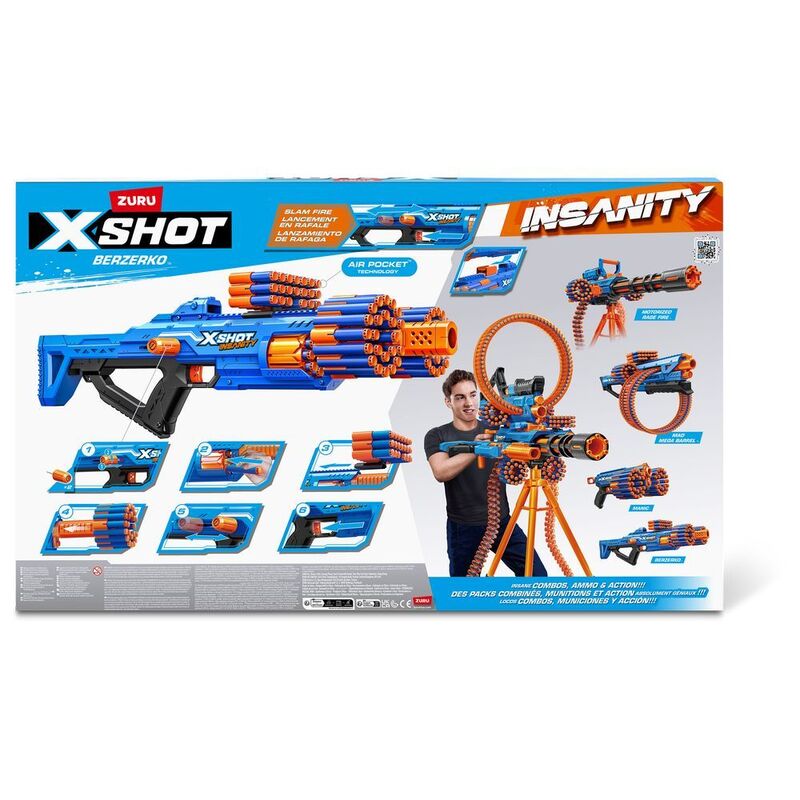 - Insane Blaster: Have your mind blown by the X-Shot Insanity Berzerko Blaster. Combine the Berzerko with other Insanity Blasters to create the most EPIC blaster you have ever seen!