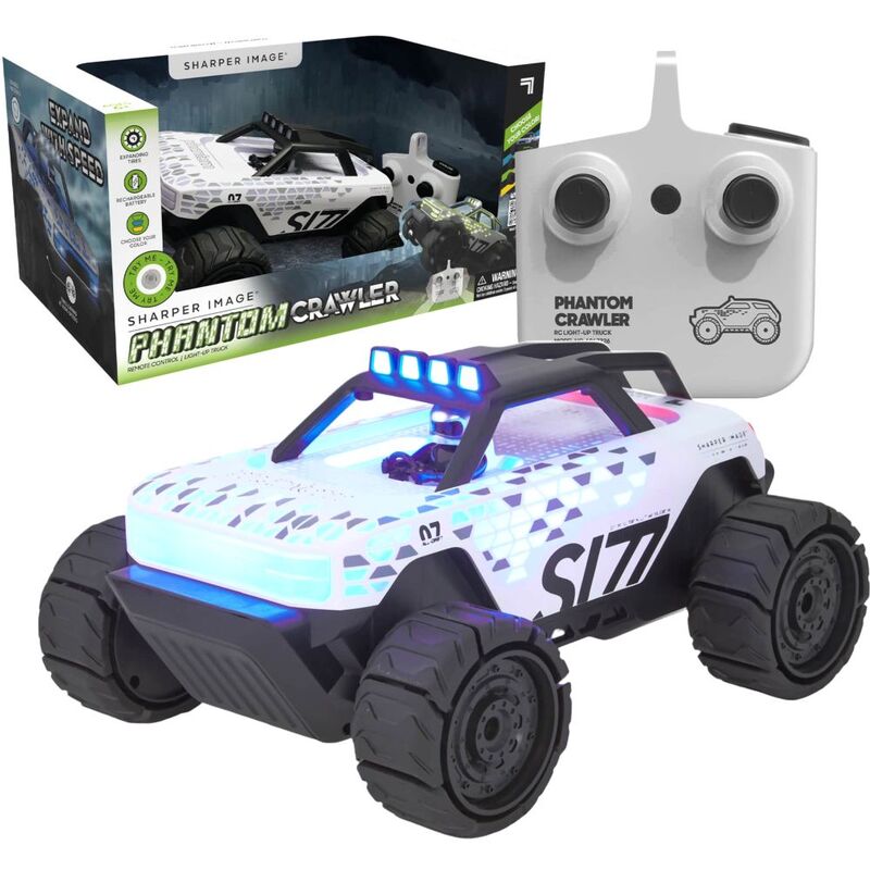 Introducing the Sharper Image Phantom Crawler RC Light-Up Truck, designed to dominate any terrain with its innovative expanding tires. These oversized tires adjust to provide superior traction and stability, making every adventure possible. Stand out on the track with colour-changing lights that let you choose between 3 vibrant colours to illuminate your path.